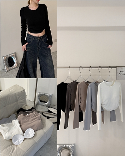 // 柔軟棉Tee 側抓皺設計 (附可拆Bra)