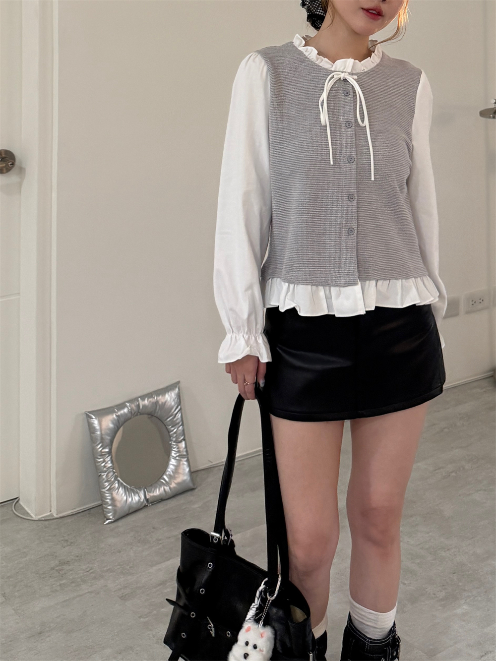 // 甜美拼接設計 小蕾絲領配綁結~出席婚禮 約會聚會都適合!