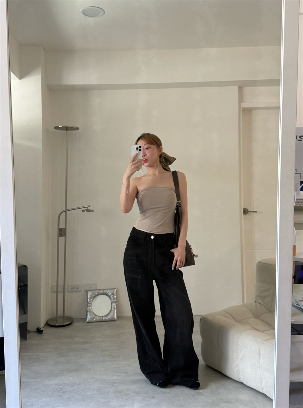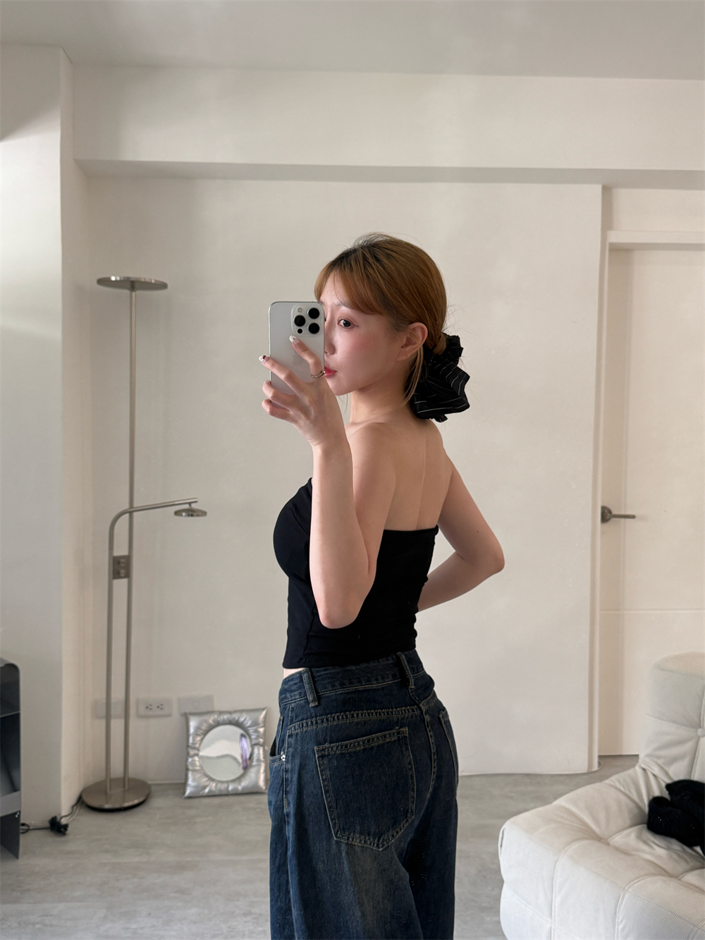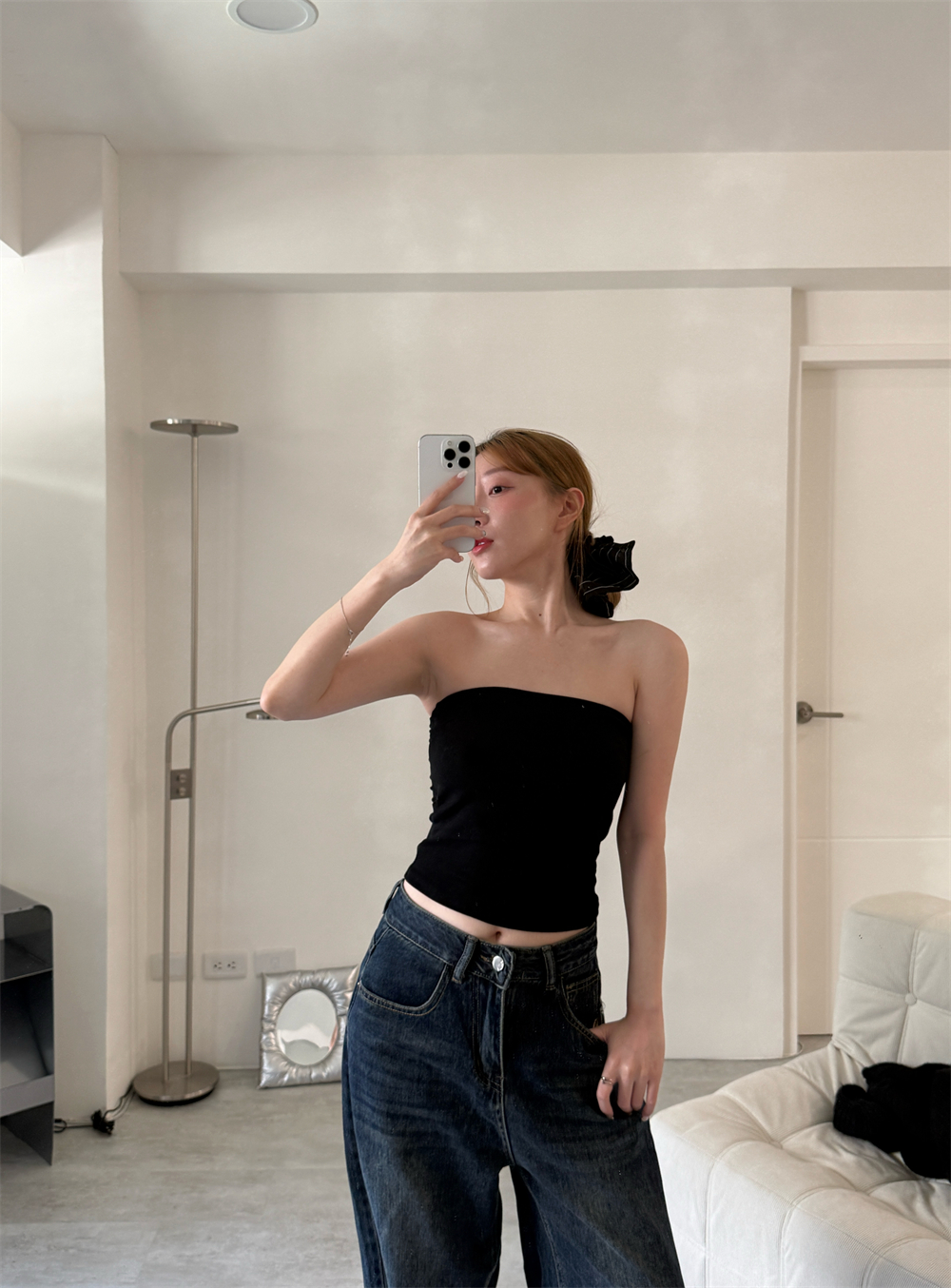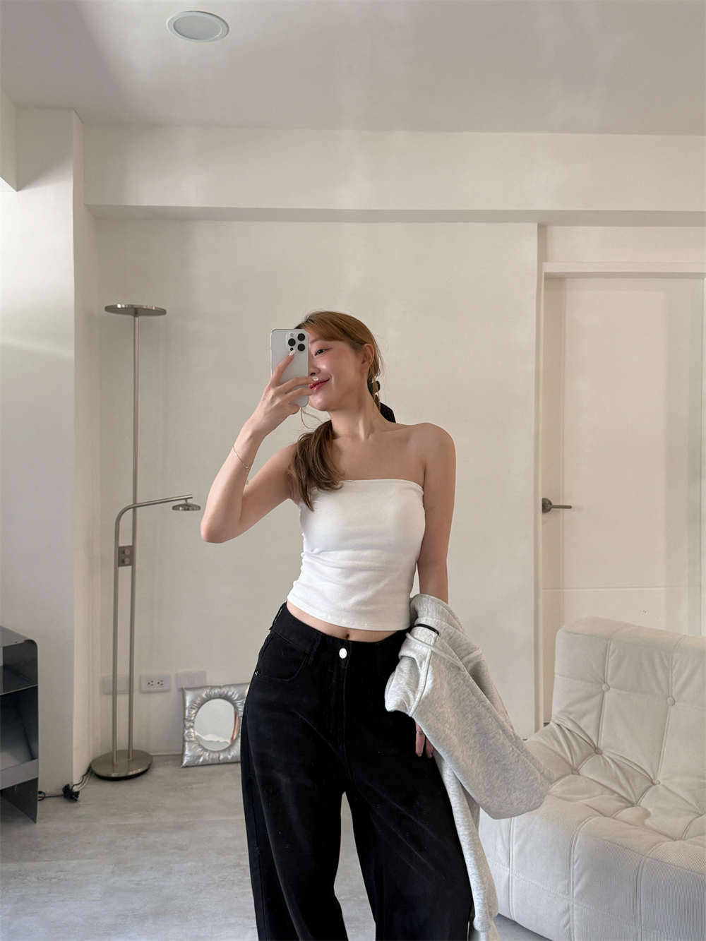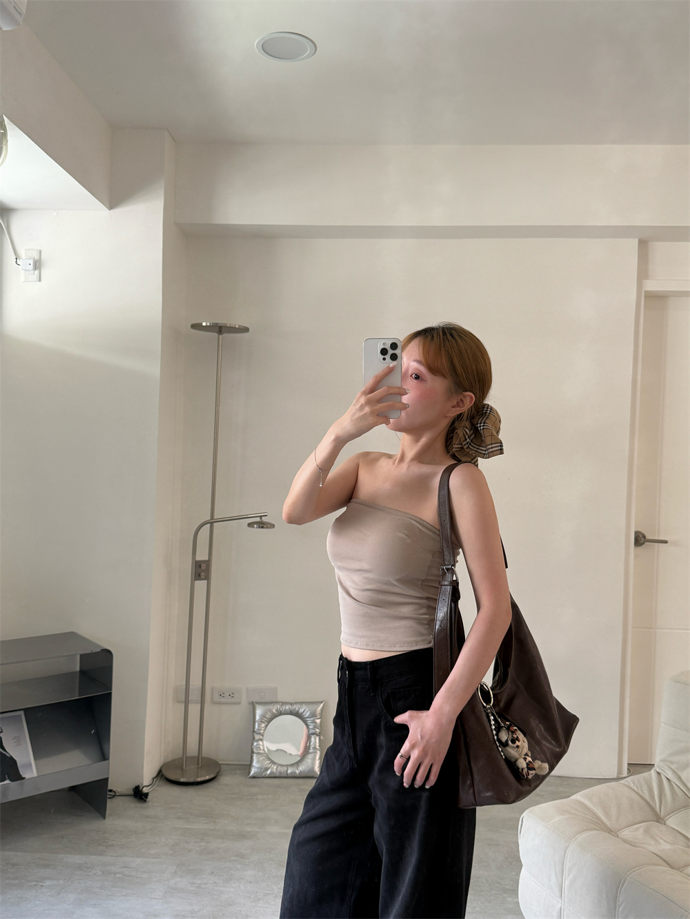 // 秋冬也好搭的平口!內附Bra.胸上有膠條不易滑落♡