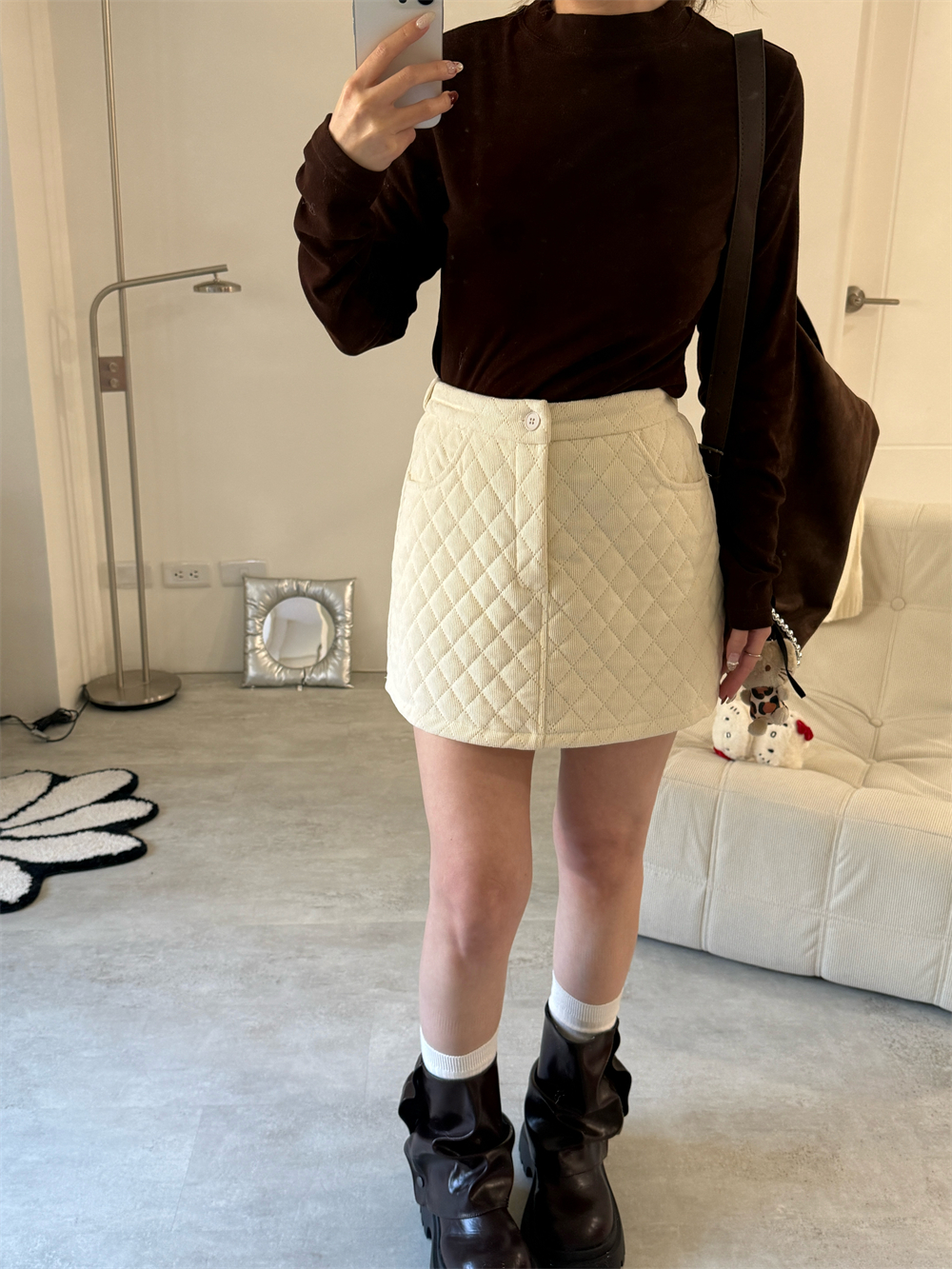 // 超Q菱格紋小鋪棉裙 (內有安全褲)