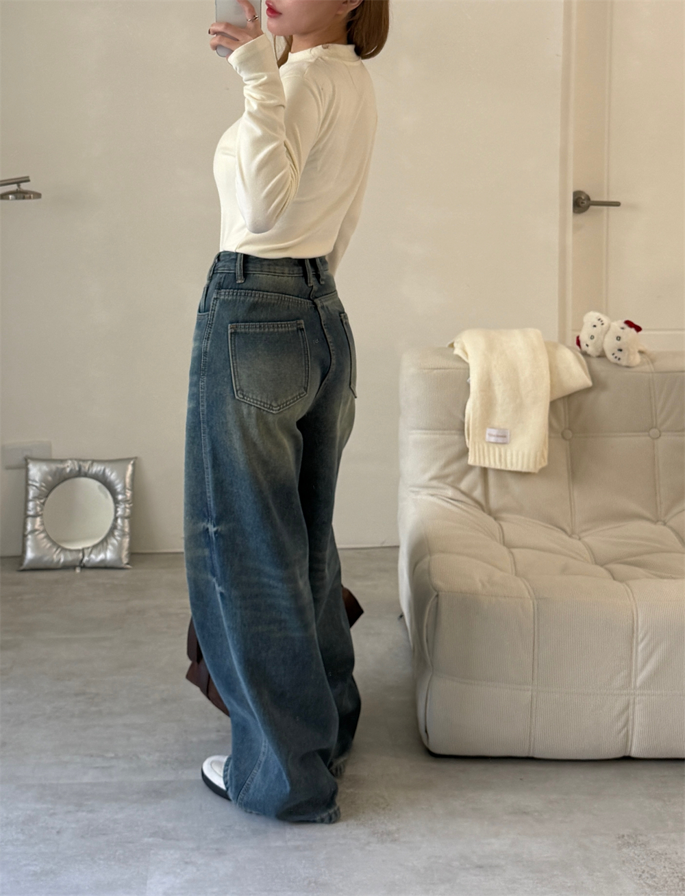 內刷絨!保暖牛仔寬褲