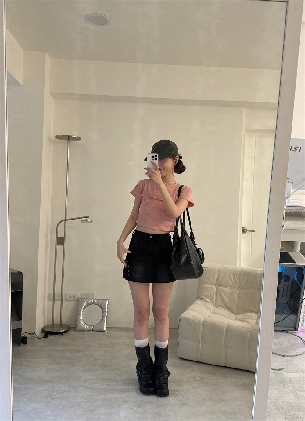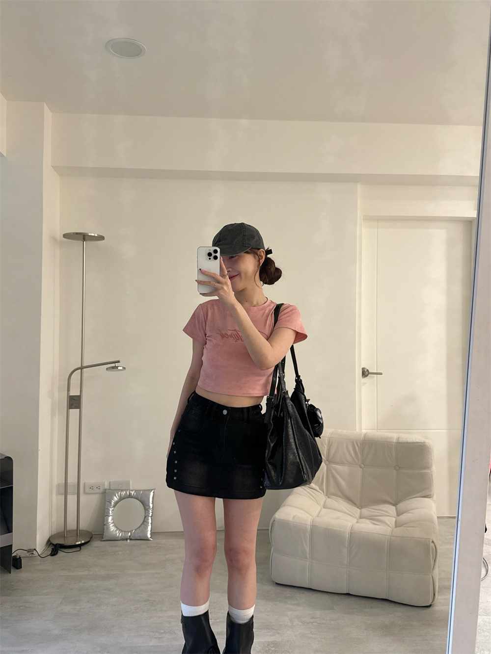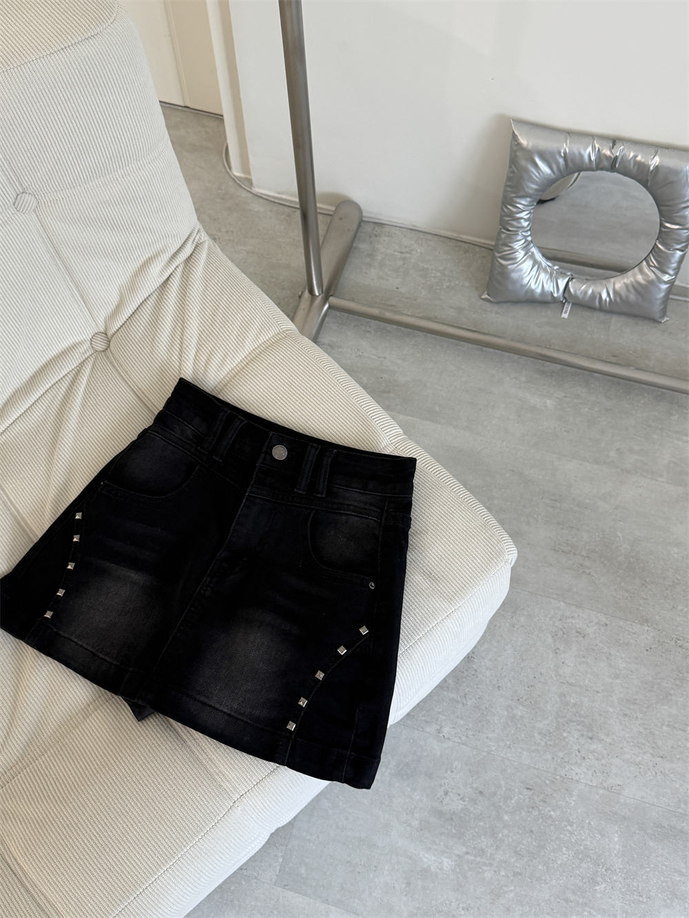 // 鉚釘刷色設計 日常百搭黑裙♡