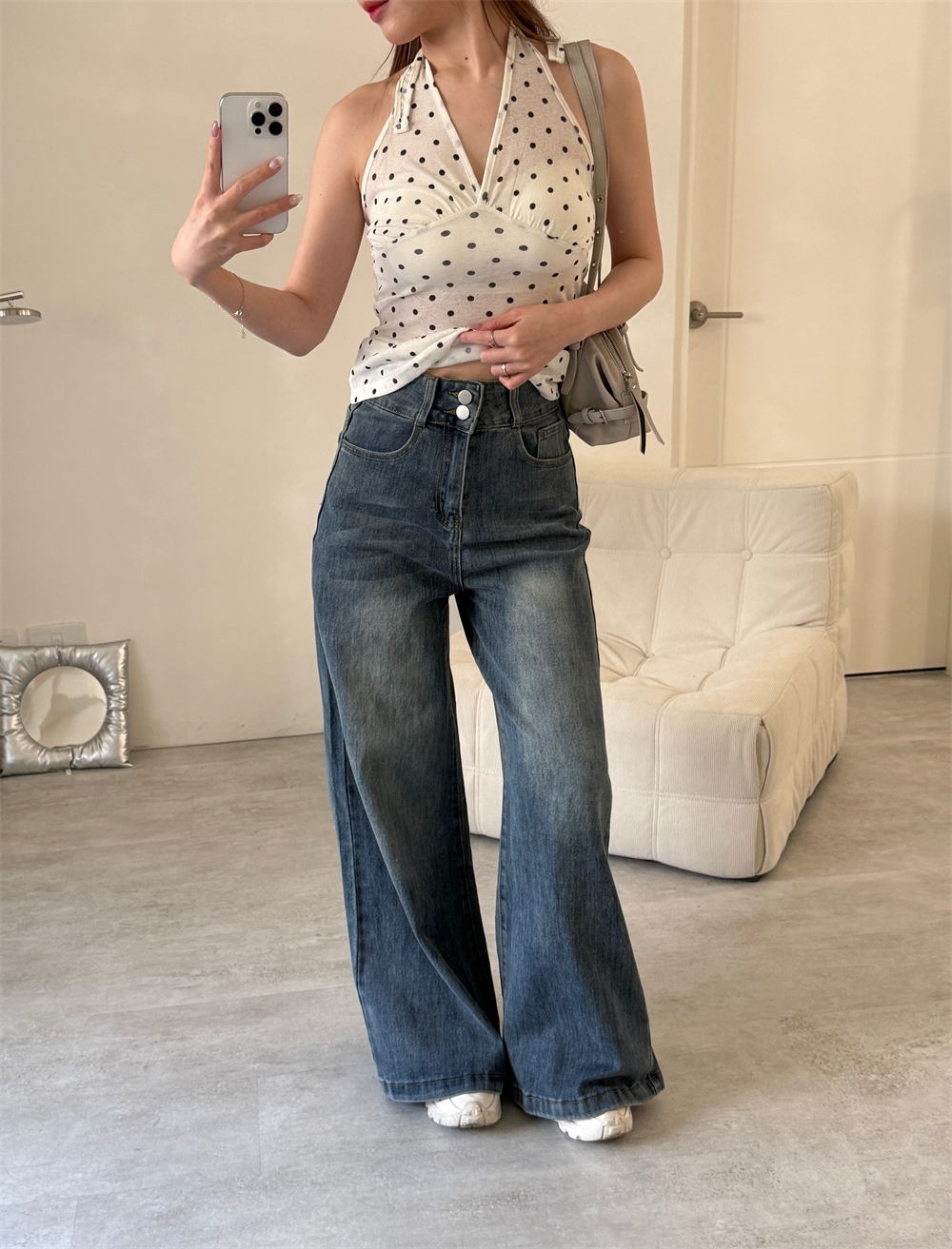 // 復古深藍闊腿褲♡♡超百搭超出片 !!!!
