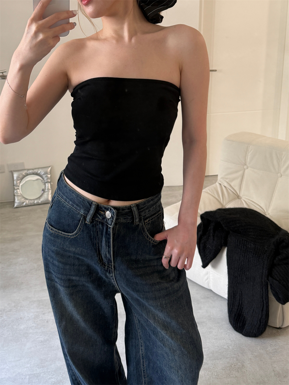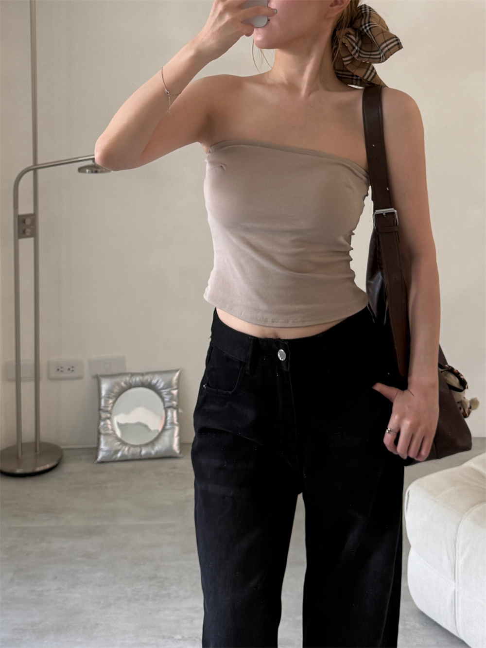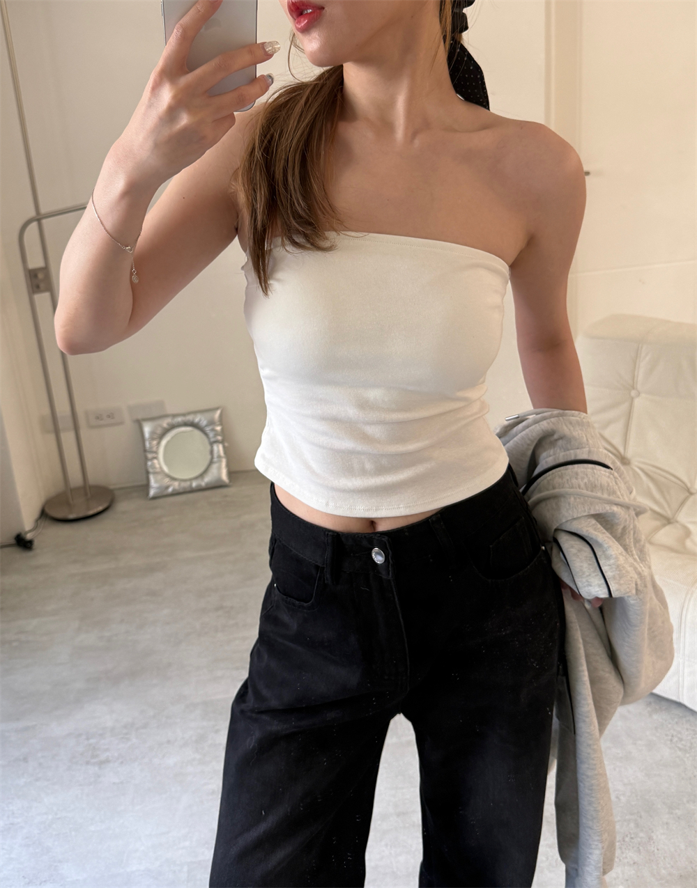 // 秋冬也好搭的平口!內附Bra.胸上有膠條不易滑落♡