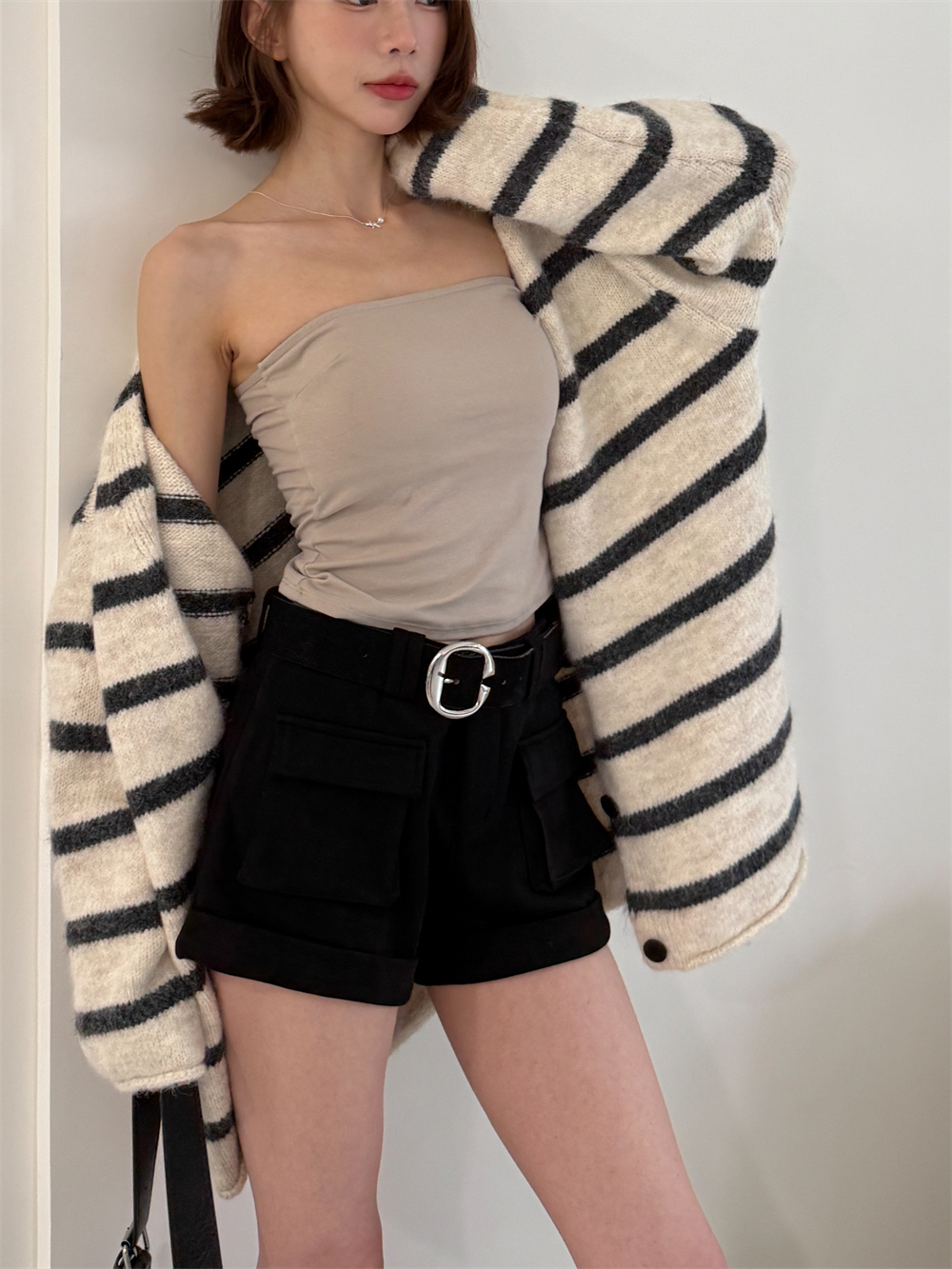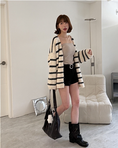 慵懶條紋厚毛衣外