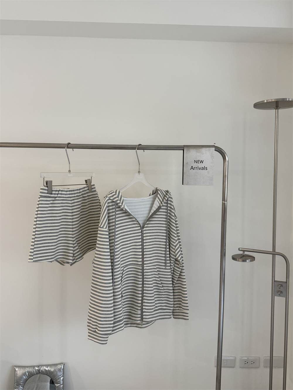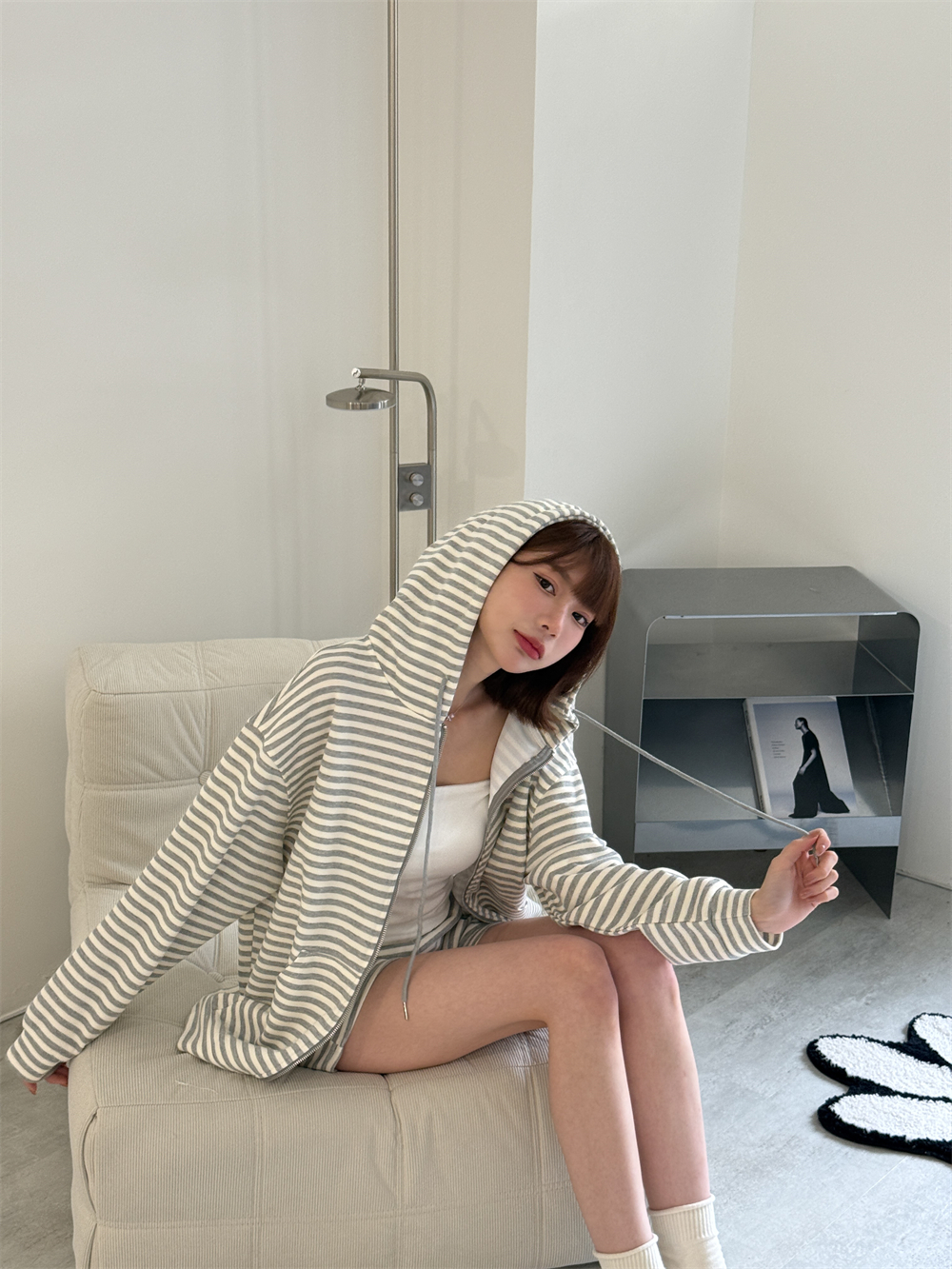 休閒連帽條紋套裝