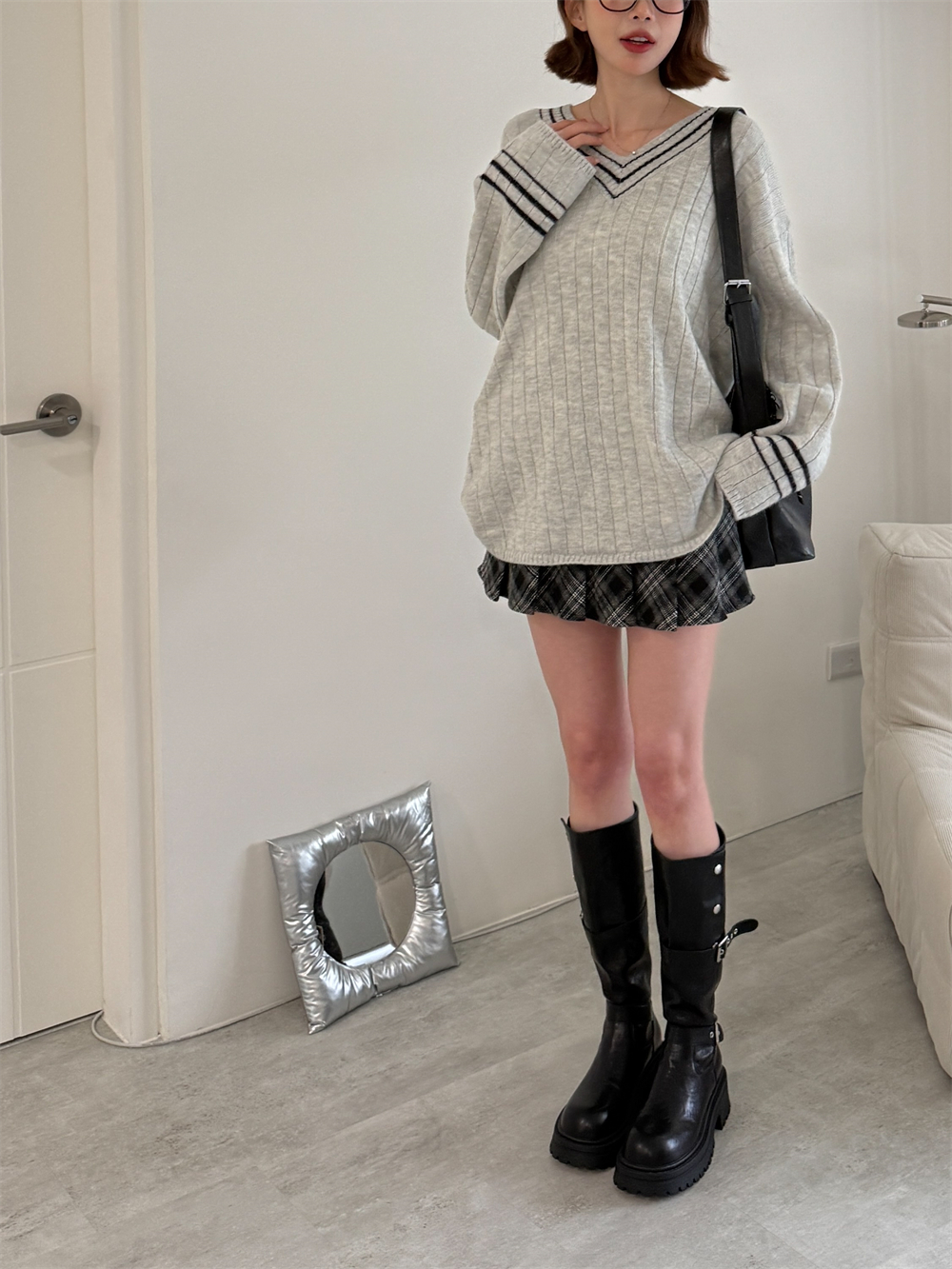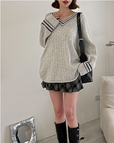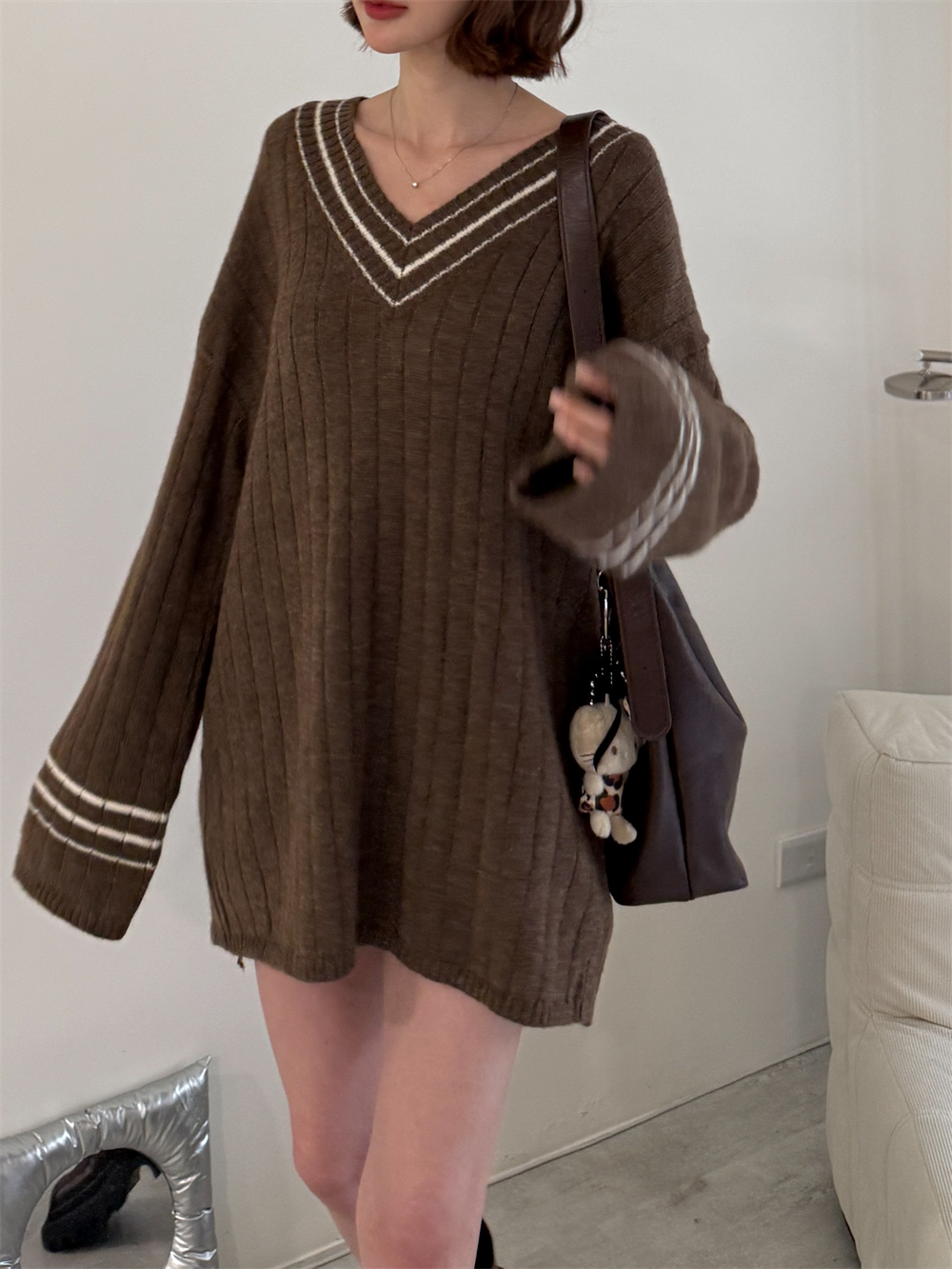 // 慵懶寬鬆感學院針織洋♡冬天也可以甜美又可愛!