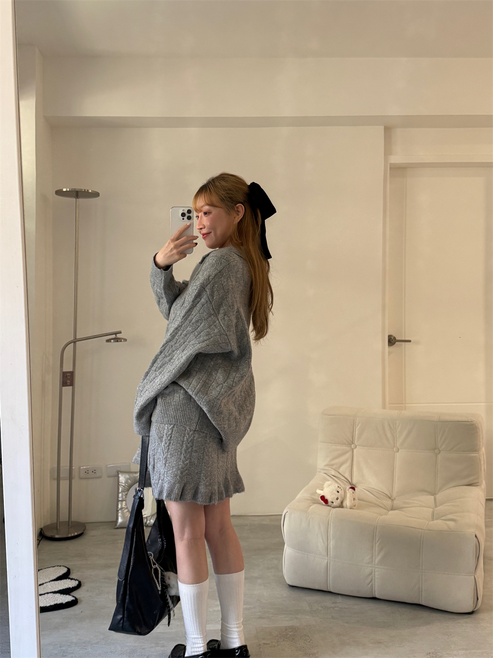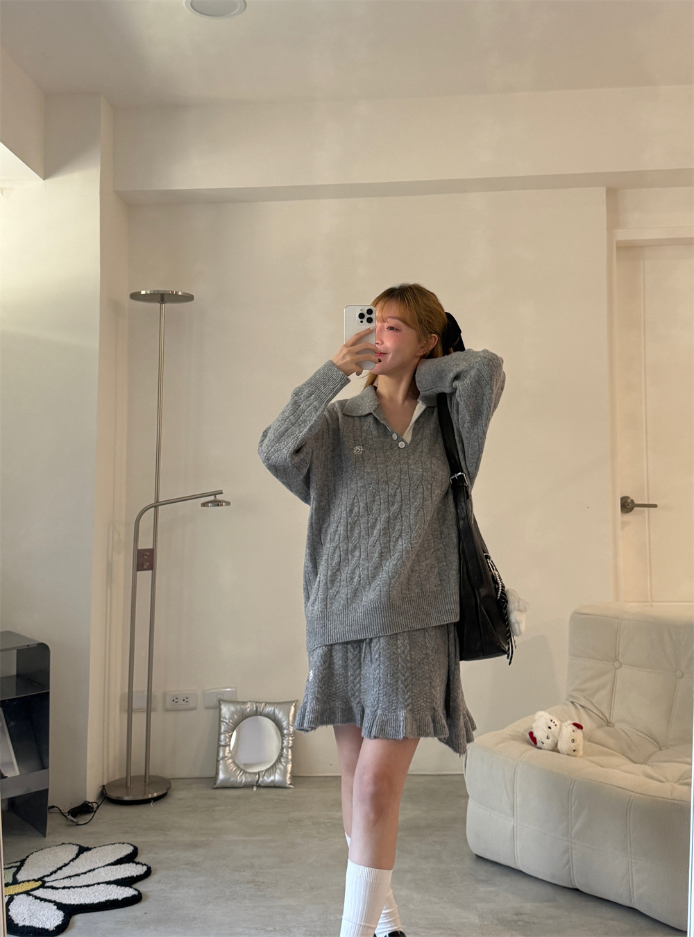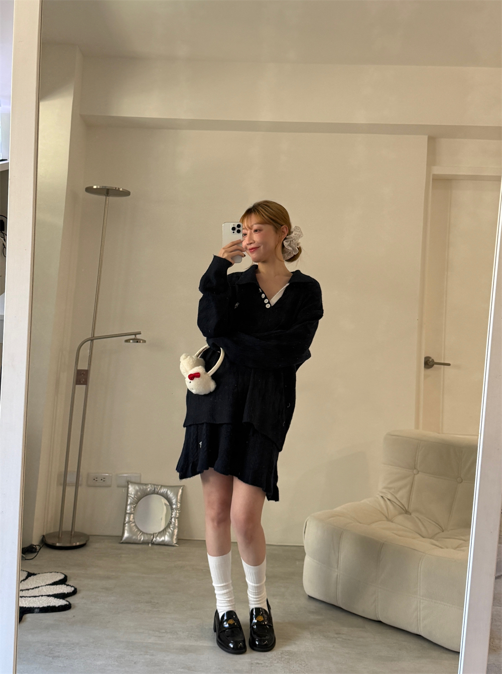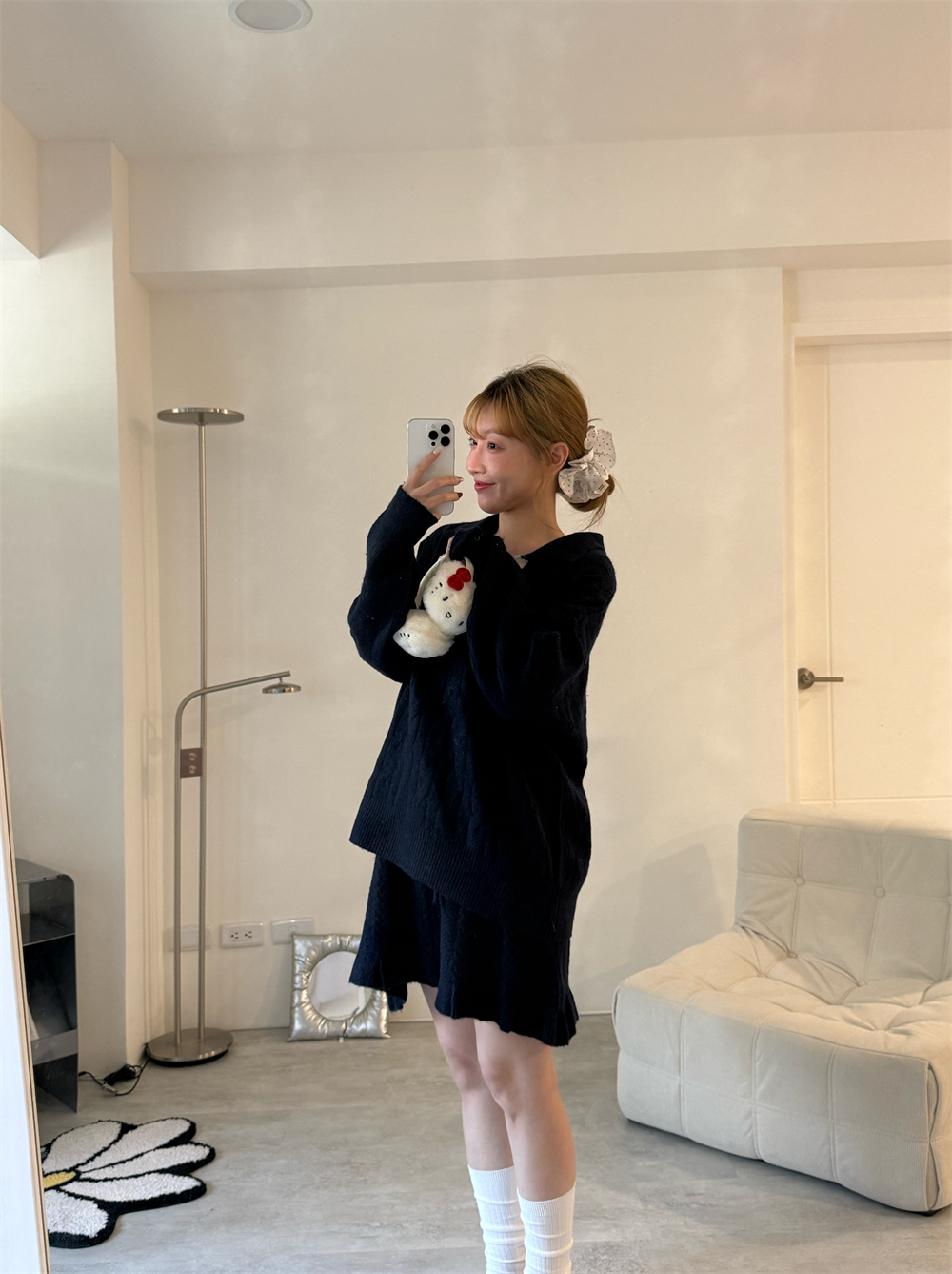 // 學院風氛圍感套裝♡♡♡ 裙子是微長板 想穿長或短都OK!