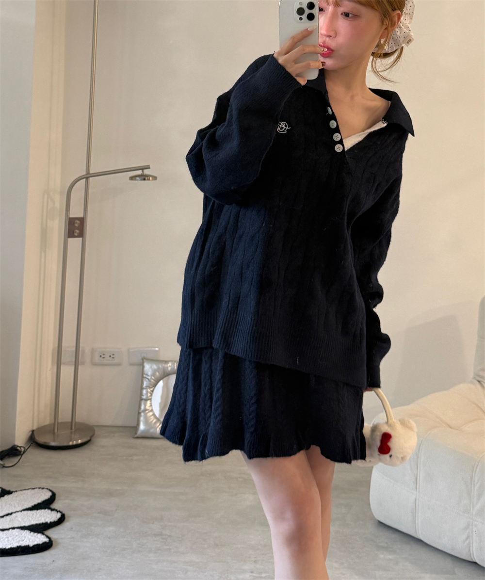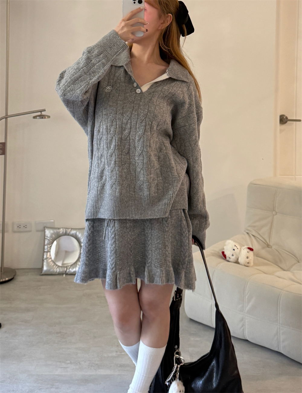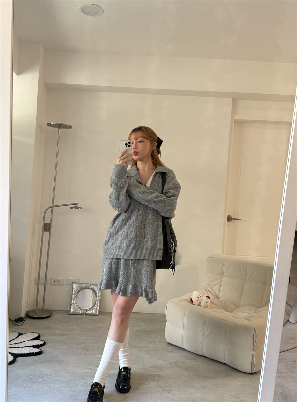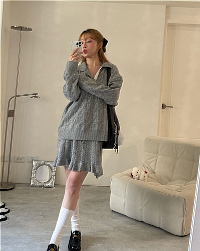 // 學院風氛圍感套裝♡♡♡ 裙子是微長板 想穿長或短都OK!
