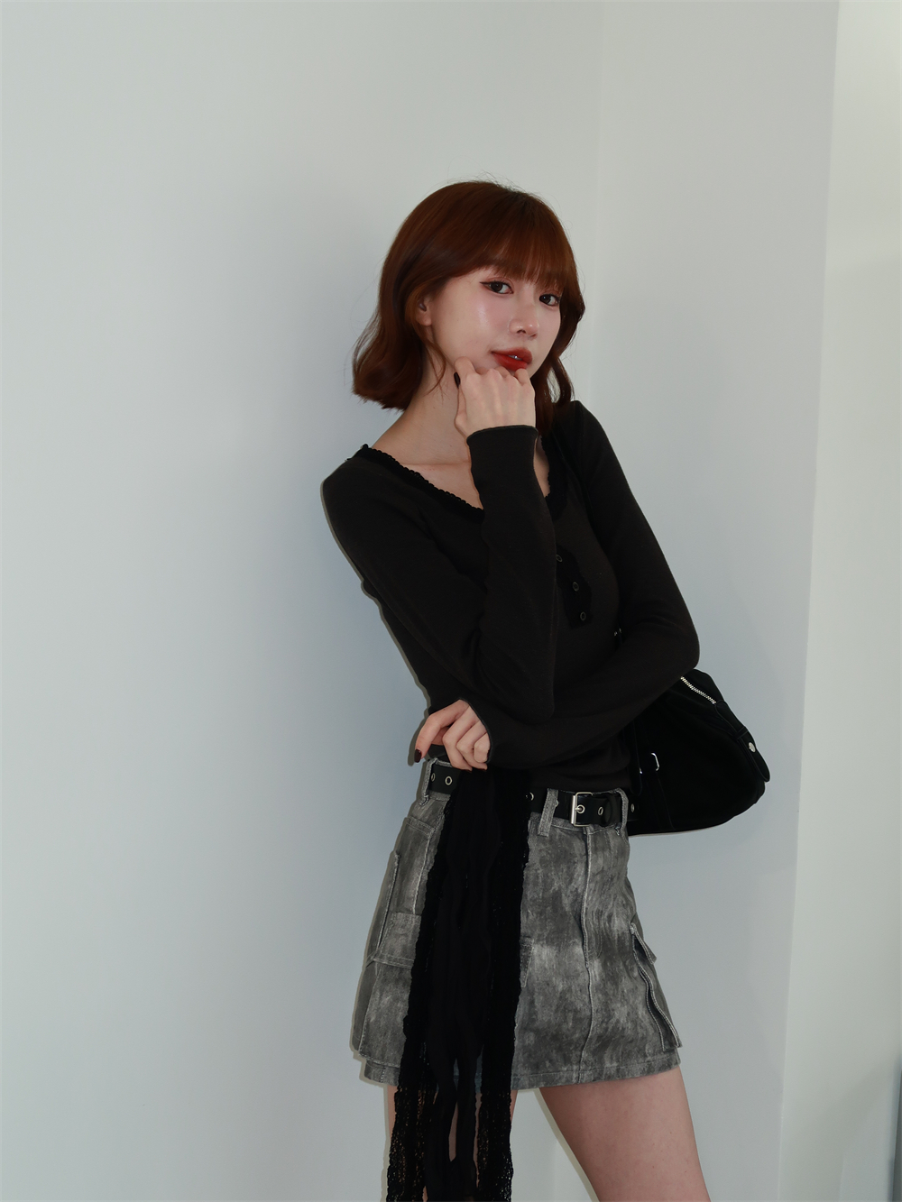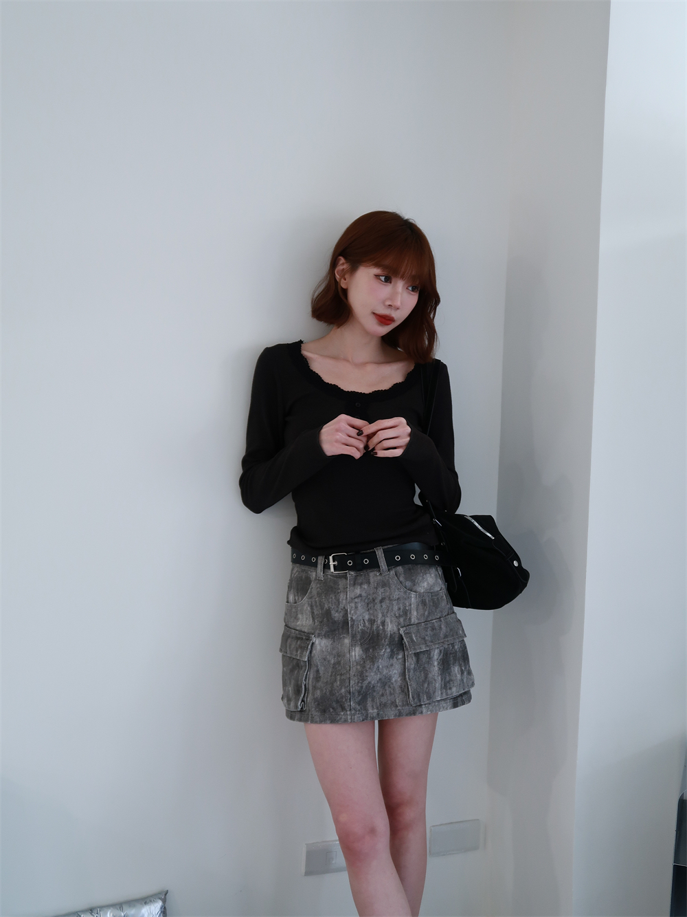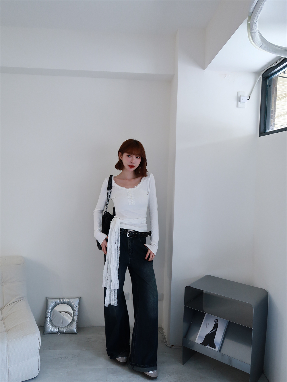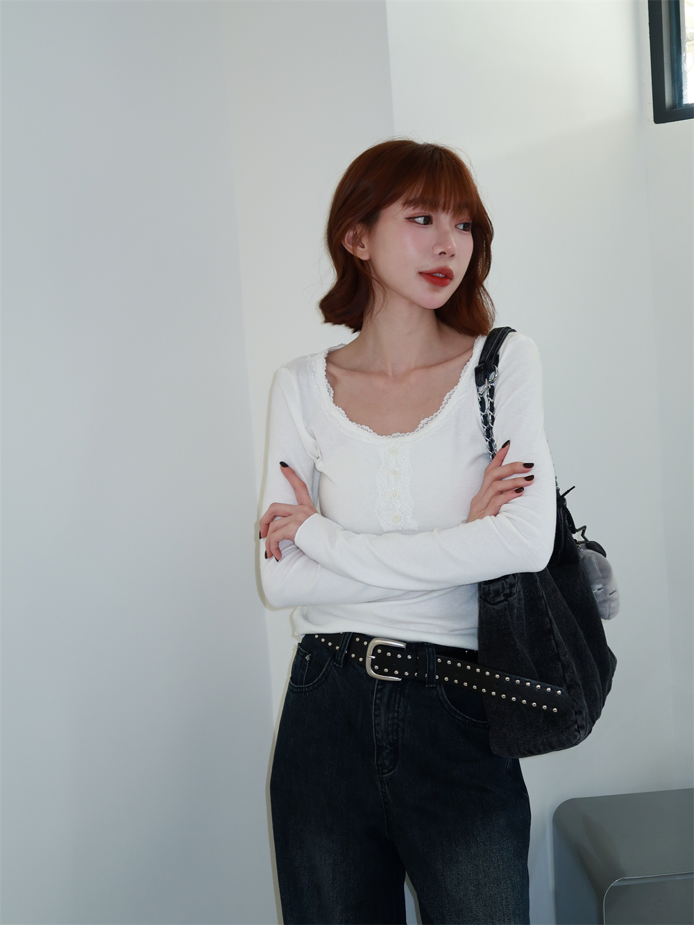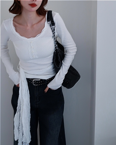 // 附蕾絲綁腰♡領子的蕾絲氛圍太喜歡♡單穿或綁繩都好看!