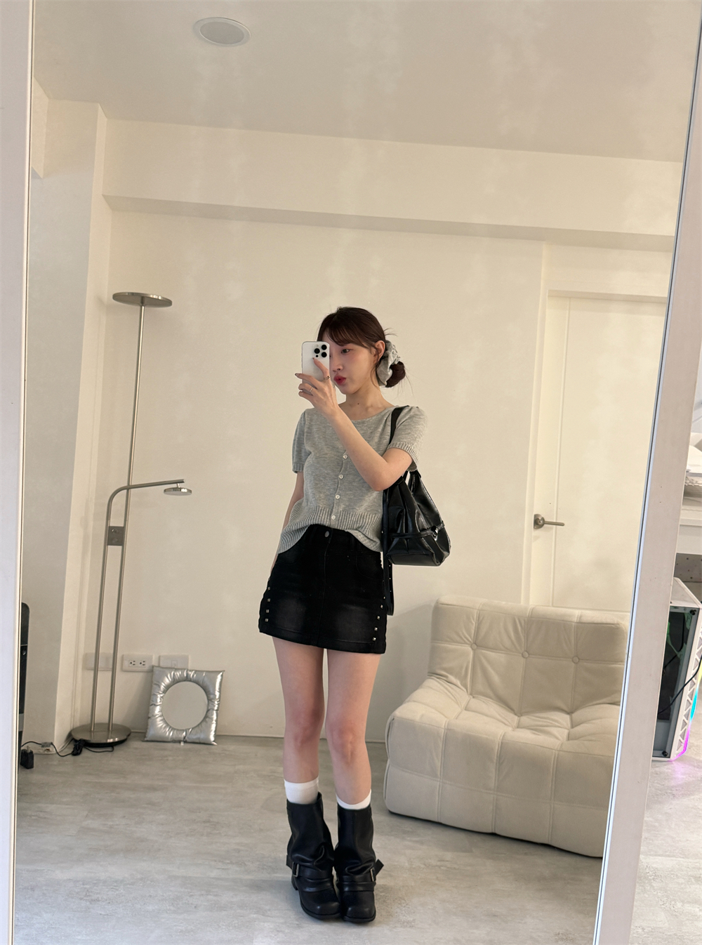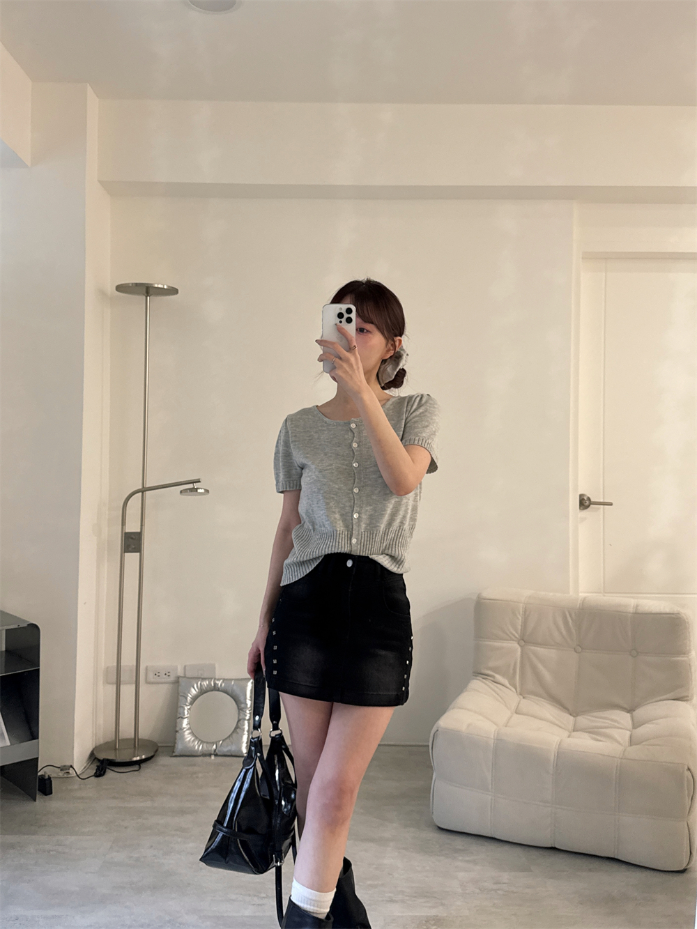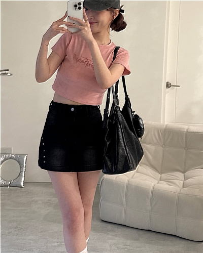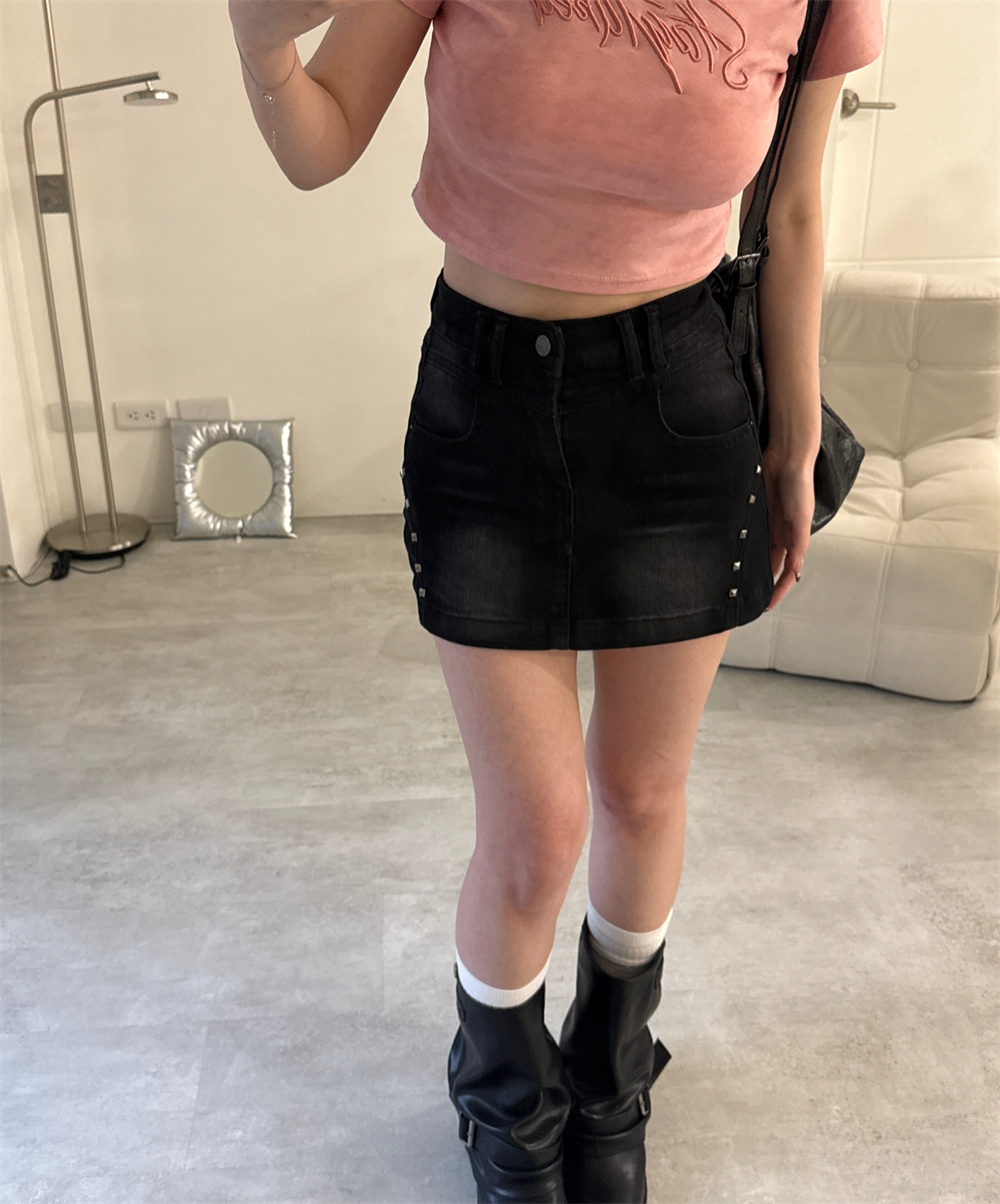 // 鉚釘刷色設計 日常百搭黑裙♡