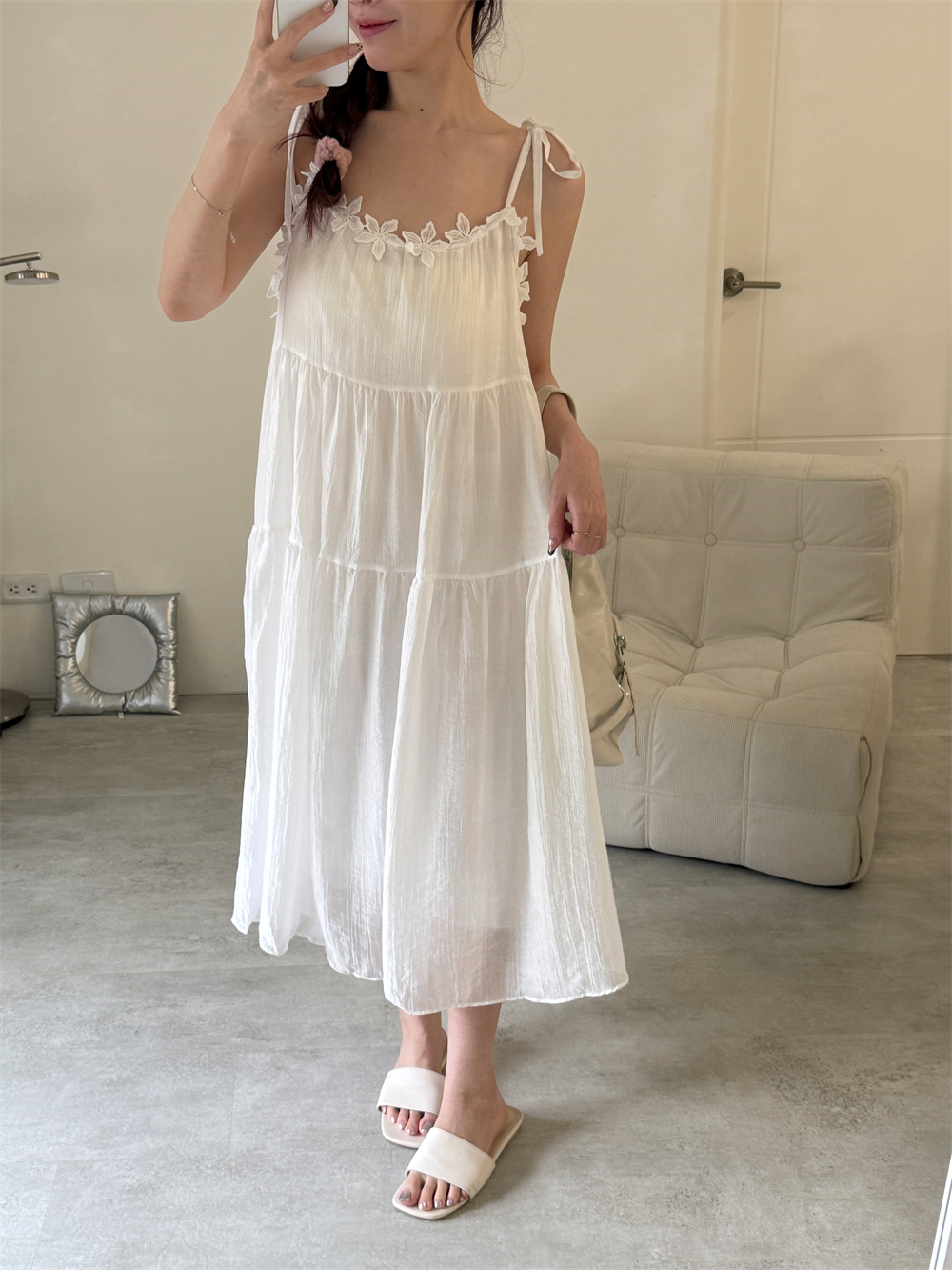 // 春季清新浪漫♡小花花純白洋裝