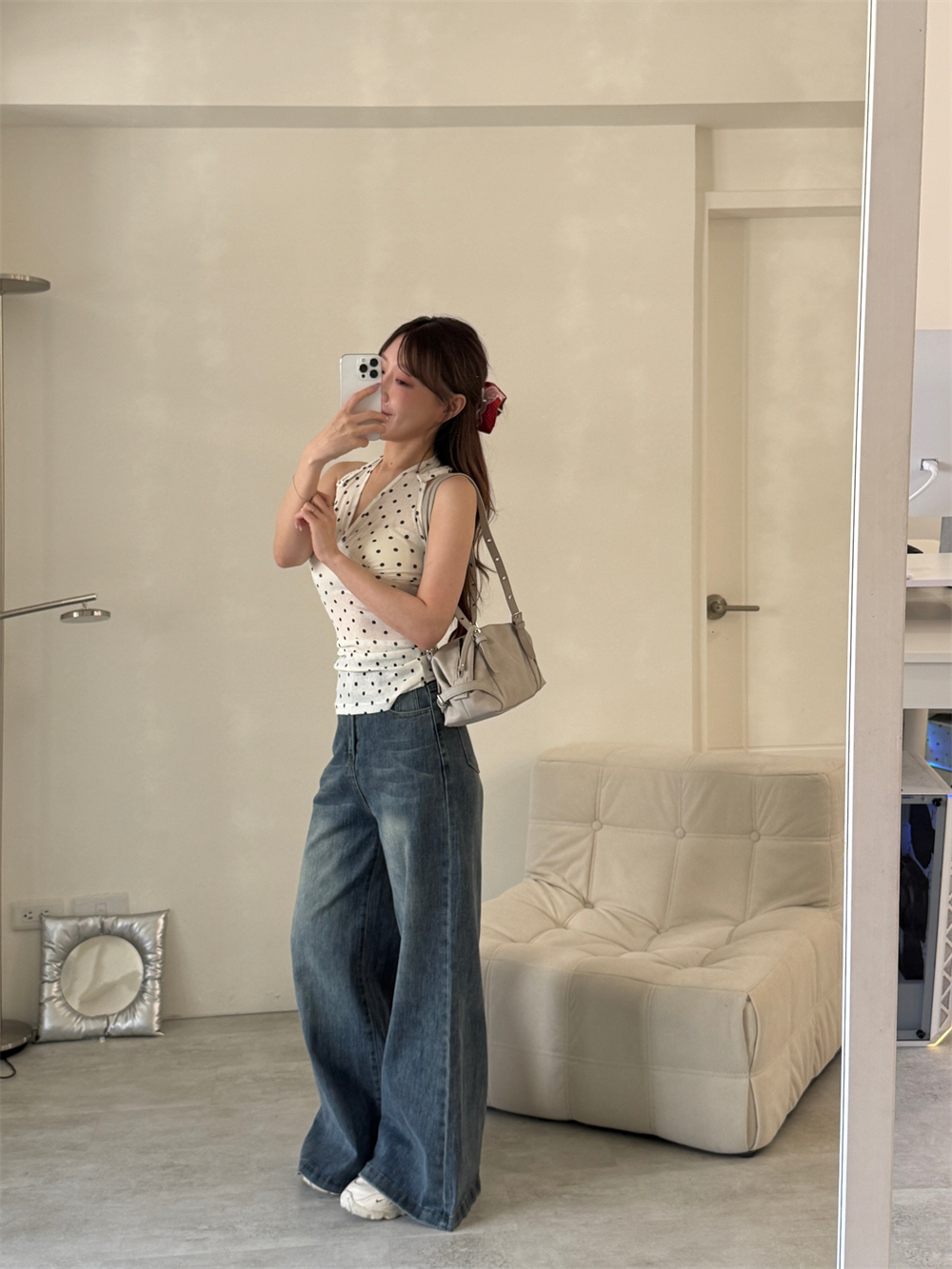 // 復古深藍闊腿褲♡♡超百搭超出片 !!!!